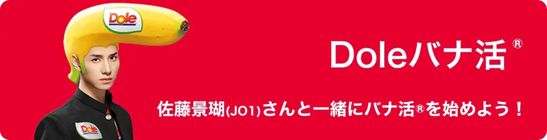 Dole バナ活®サポーター バナナ番長に就任した佐藤景瑚(JO1)さんが登場。ソロオリジナル楽曲『BANANA』や、バナナ番長としての思い、大好きなバナナの推しポイントなど、撮り下ろし写真とともに熱いインタビューをたっぷりお届けします!