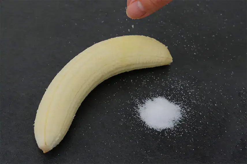 作り方はとても簡単! バナナの皮をむき、食べる直前にひとつまみ程度の塩をパラパラッとふるだけです。