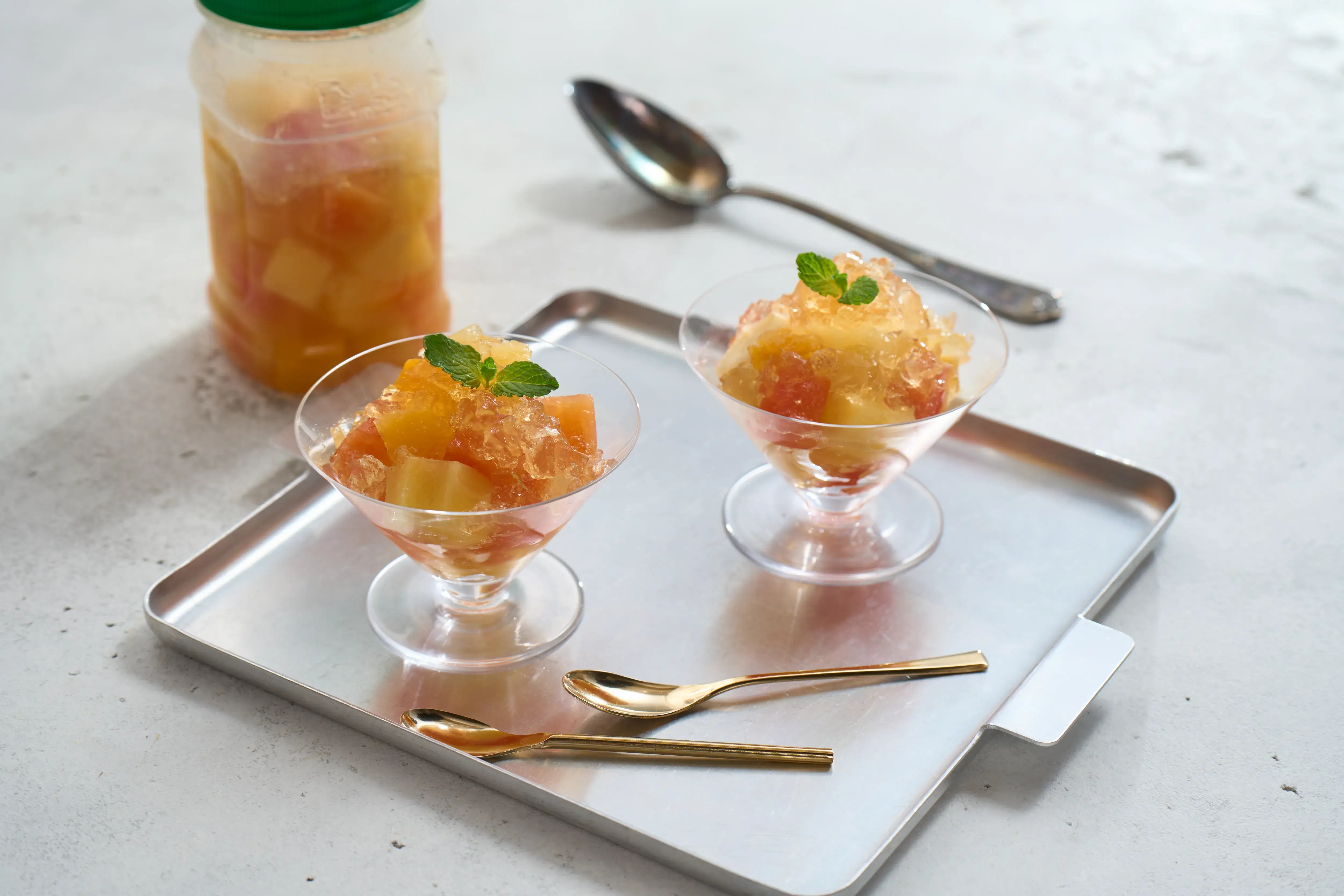 ドールのフルーツパウチは、こだわりの果実に加え、液部も楽しんでもらえるようにパイン果汁と白ぶどう果汁を配合した100%ジュースを使用。 ヨーグルトやグラノーラとの相性も良く、トッピングとしてもご使用いただけます。